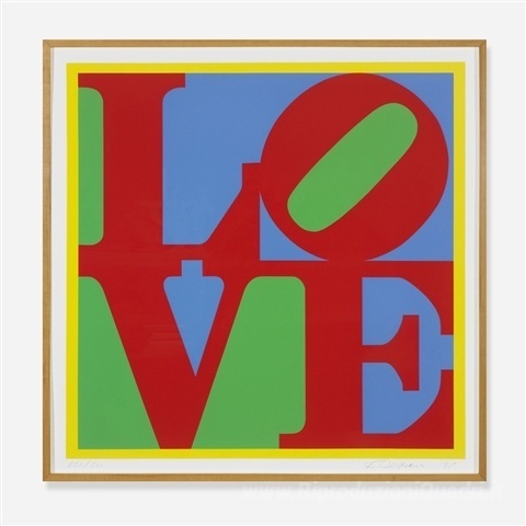 Ti offriamo una riproduzione artigianale su tela dell'opera famosa 'Elioterapia Amore' di Robert Indiana, dal Museo delle Riproduzioni.