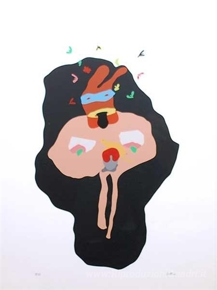 Ti offriamo una riproduzione artigianale su tela dell'opera famosa 'Ermafrodito' di Walter Battiss, dal Museo delle Riproduzioni.