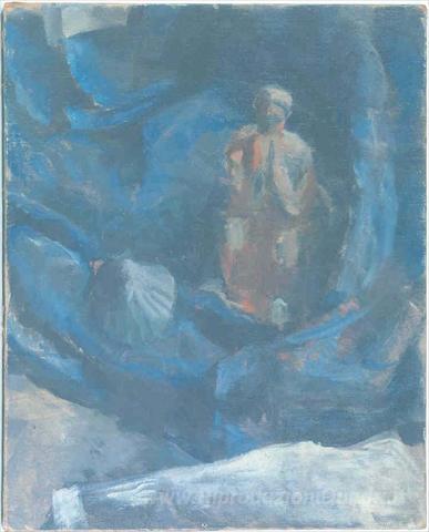 Ti offriamo una riproduzione artigianale su tela dell'opera famosa 'Femme et coquillage sur fond bleu' di Le Corbusier, dal Museo delle Riproduzioni.