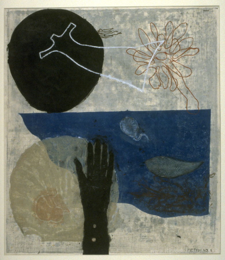 Ti offriamo una riproduzione artigianale su tela dell'opera famosa 'Fiction n. 1' di Koshiro Onchi, dal Museo delle Riproduzioni.