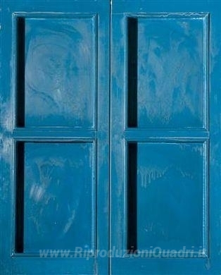 Ti offriamo una riproduzione artigianale su tela dell'opera famosa 'Finestra blu' di Tano Festa, dal Museo delle Riproduzioni.