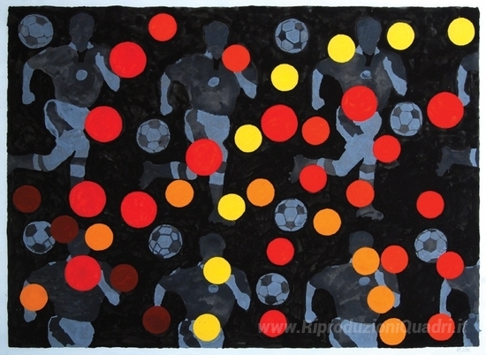 Ti offriamo una riproduzione artigianale su tela dell'opera famosa 'Fooootball' di Derek Boshier, dal Museo delle Riproduzioni.