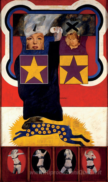 Ti offriamo una riproduzione artigianale su tela dell'opera famosa 'For Men Only - Protagonisti MM e BB' di Peter Phillips, dal Museo delle Riproduzioni.