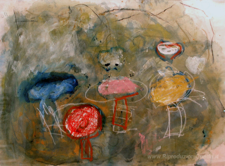 Ti offriamo una riproduzione artigianale su tela dell'opera famosa 'Funghi' di Gandy Brodie, dal Museo delle Riproduzioni.