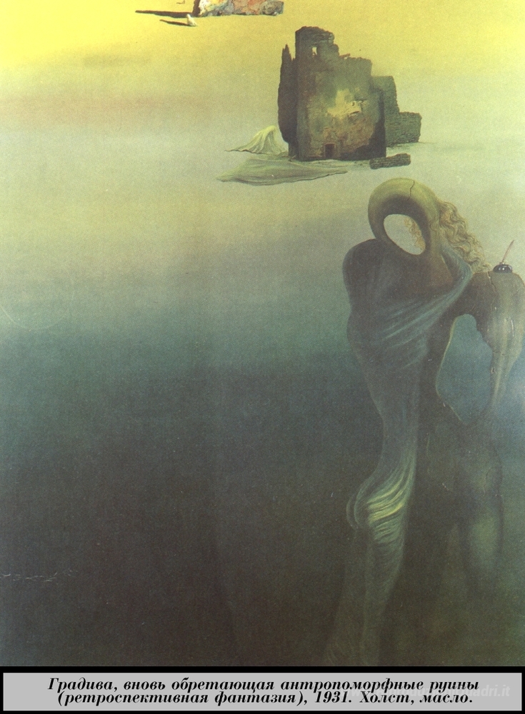 Ti offriamo una riproduzione artigianale su tela dell'opera famosa 'Gradiva ritrovamenti rovine antropomorfi' di Salvador Dali, dal Museo delle Riproduzioni.