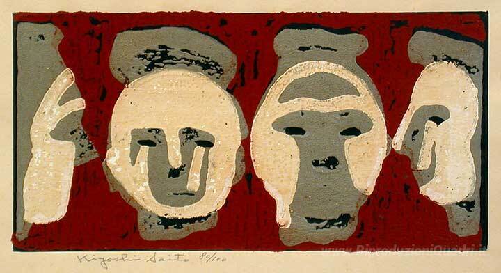 Ti offriamo una riproduzione artigianale su tela dell'opera famosa 'Haniwa' di Kiyoshi Saito, dal Museo delle Riproduzioni.