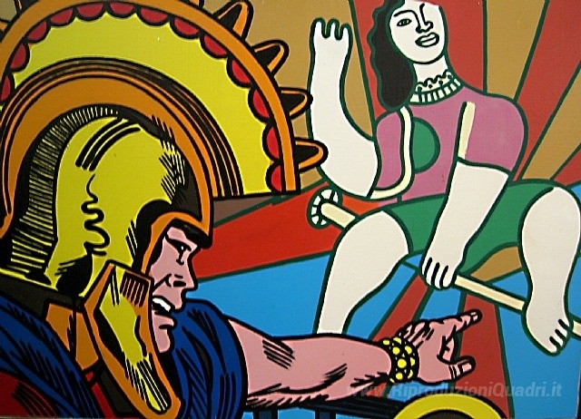 Ti offriamo una riproduzione artigianale su tela dell'opera famosa 'Hommage à Léger' di Erro, dal Museo delle Riproduzioni.