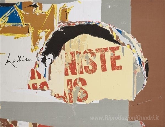 Ti offriamo una riproduzione artigianale su tela dell'opera famosa 'Hommage à Mathieu' di Jacques Villeglé, dal Museo delle Riproduzioni.