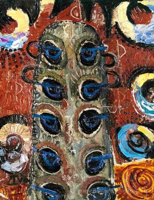 Ti offriamo una riproduzione artigianale su tela dell'opera famosa 'I Pavoni degli sguardi' di Ion Tuculescu, dal Museo delle Riproduzioni.