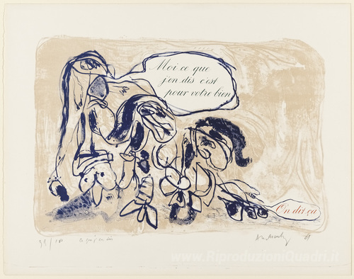 Ti offriamo una riproduzione artigianale su tela dell'opera famosa 'Il mio consiglio per voi (Ce que j'en dis)' di Pierre Alechinsky, dal Museo delle Riproduzioni.