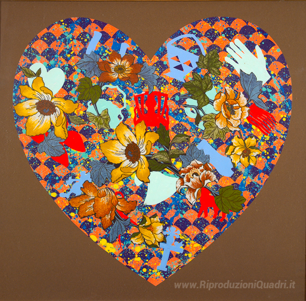 Ti offriamo una riproduzione artigianale su tela dell'opera famosa 'Il nostro cuore Stenciled' di Miriam Schapiro, dal Museo delle Riproduzioni.
