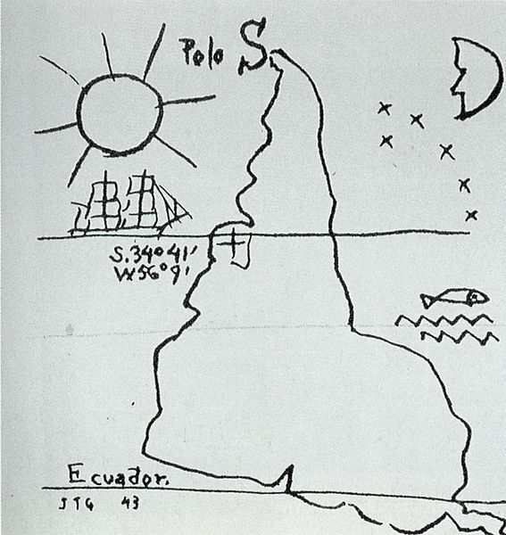 Ti offriamo una riproduzione artigianale su tela dell'opera famosa 'Invertito l'America' di Joaquin Torres Garcia, dal Museo delle Riproduzioni.