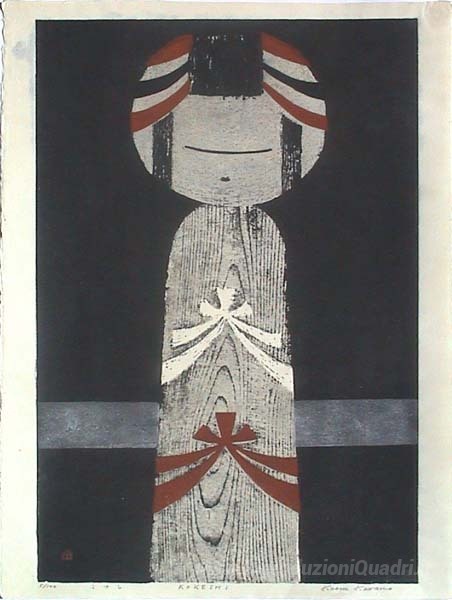Ti offriamo una riproduzione artigianale su tela dell'opera famosa 'Kokeshi Doll' di Kaoru Kawano, dal Museo delle Riproduzioni.