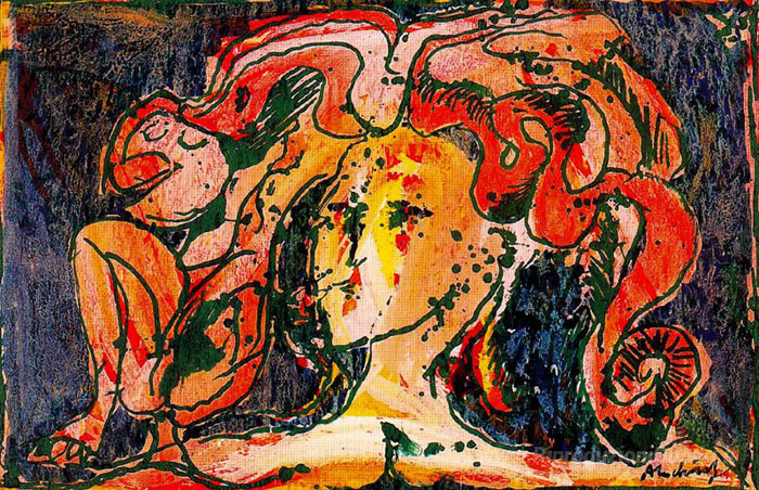 Ti offriamo una riproduzione artigianale su tela dell'opera famosa 'La Cantatrice' di Pierre Alechinsky, dal Museo delle Riproduzioni.