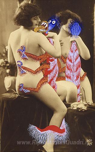 Ti offriamo una riproduzione artigianale su tela dell'opera famosa 'La Dragoulette (da La Vie des Amoureuse Spumifères)' di Georges Hugnet, dal Museo delle Riproduzioni.
