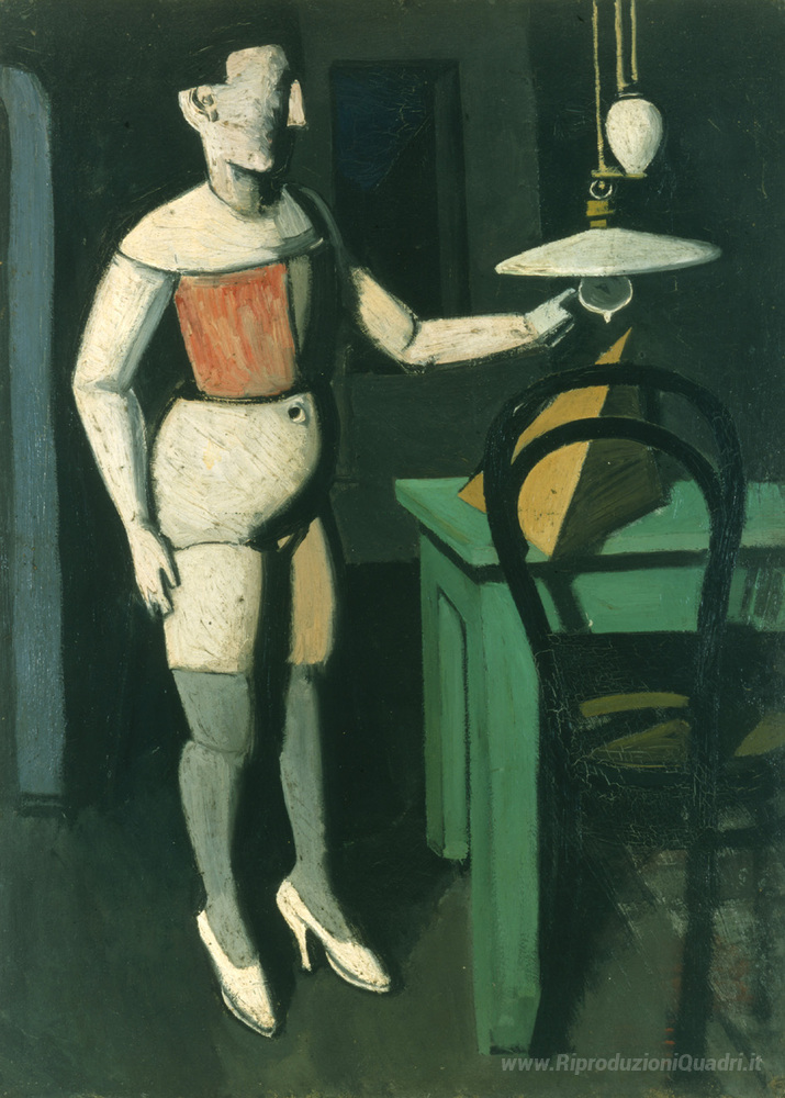 Ti offriamo una riproduzione artigianale su tela dell'opera famosa 'La lampada' di Mario Sironi, dal Museo delle Riproduzioni.