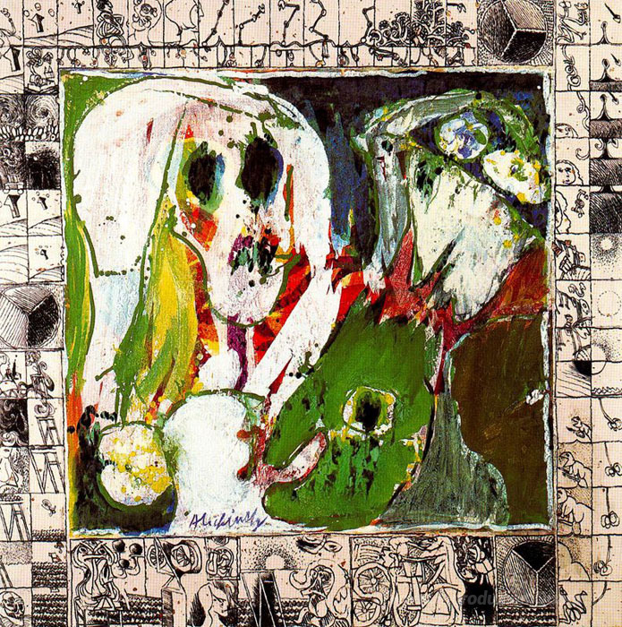 Ti offriamo una riproduzione artigianale su tela dell'opera famosa 'La ragazza e la morte' di Pierre Alechinsky, dal Museo delle Riproduzioni.