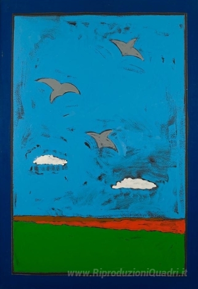 Ti offriamo una riproduzione artigianale su tela dell'opera famosa 'La rotta delle rondini' di Tano Festa, dal Museo delle Riproduzioni.