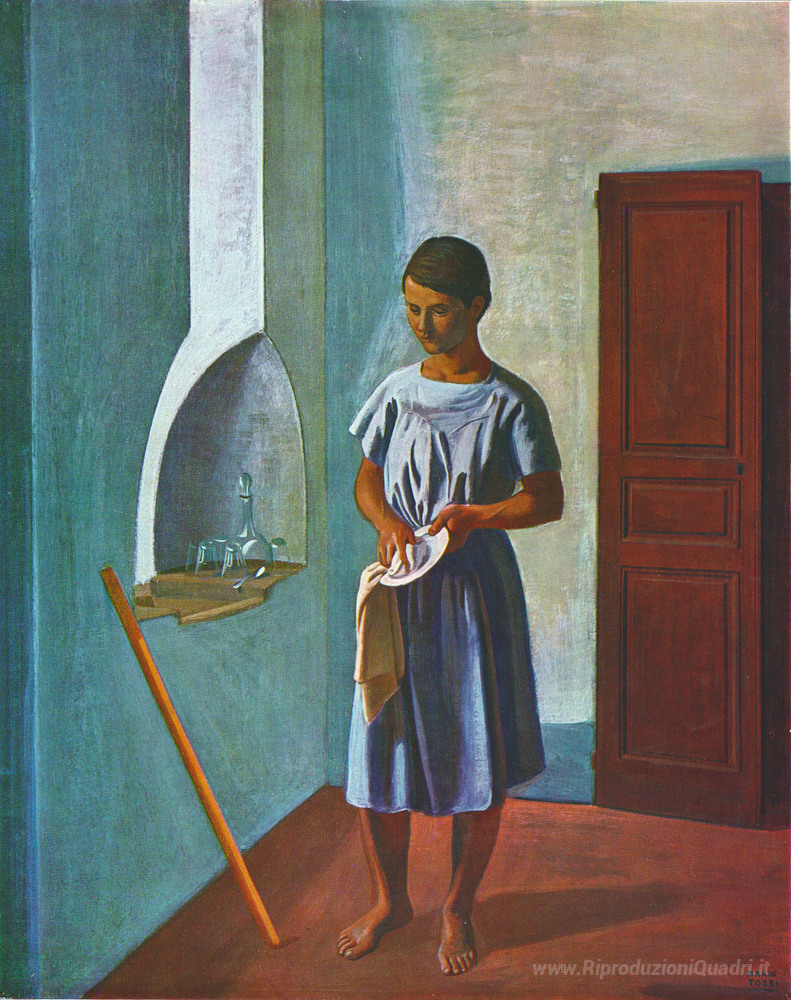 Ti offriamo una riproduzione artigianale su tela dell'opera famosa 'La Servante' di Mario Tozzi, dal Museo delle Riproduzioni.