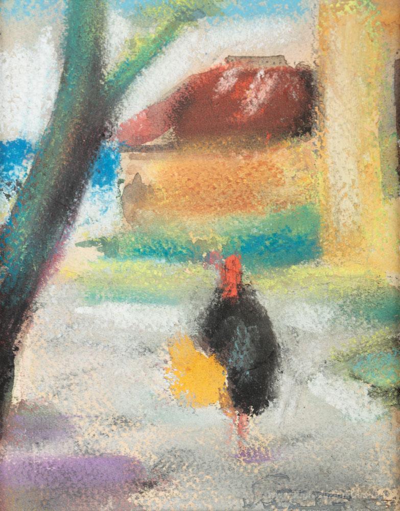 Ti offriamo una riproduzione artigianale su tela dell'opera famosa 'La strada di casa' di Francisc Sirato, dal Museo delle Riproduzioni.