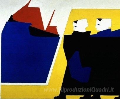 Ti offriamo una riproduzione artigianale su tela dell'opera famosa 'La tempesta' di Bart van der Leck, dal Museo delle Riproduzioni.