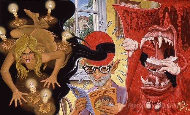 Ti offriamo una riproduzione artigianale su tela dell'opera famosa 'L'appetito che non osano essere placata' di Robert Williams, dal Museo delle Riproduzioni.