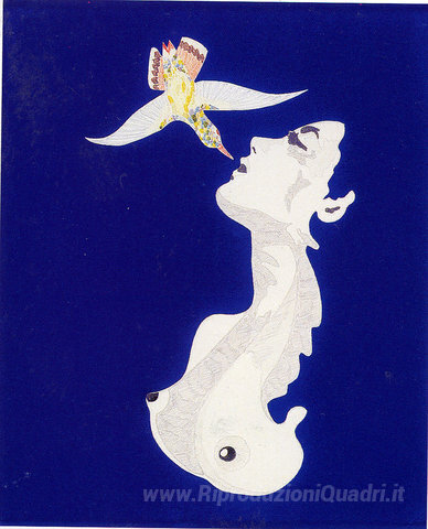 Ti offriamo una riproduzione artigianale su tela dell'opera famosa 'Le Baiser' di Evelyne Axell, dal Museo delle Riproduzioni.