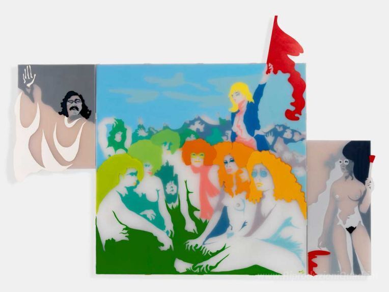 Ti offriamo una riproduzione artigianale su tela dell'opera famosa 'Le Joli Mois de Mai' di Evelyne Axell, dal Museo delle Riproduzioni.