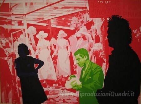 Ti offriamo una riproduzione artigianale su tela dell'opera famosa 'Le peintre et son modèle' di Gerard Fromanger, dal Museo delle Riproduzioni.