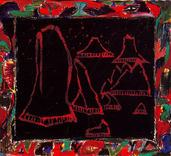 Ti offriamo una riproduzione artigianale su tela dell'opera famosa 'Les Aiguilles, VIII' di Pierre Alechinsky, dal Museo delle Riproduzioni.