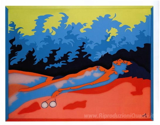 Ti offriamo una riproduzione artigianale su tela dell'opera famosa 'L'Herbe Folle' di Evelyne Axell, dal Museo delle Riproduzioni.