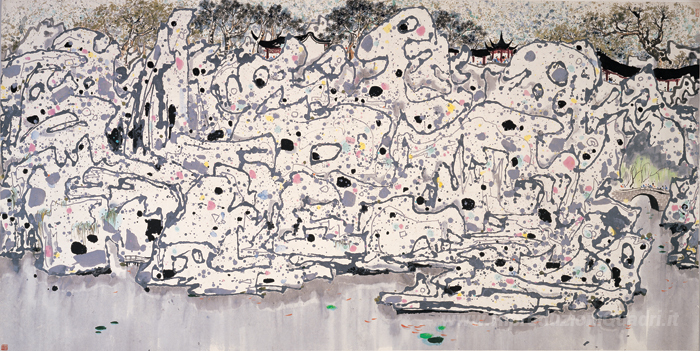 Ti offriamo una riproduzione artigianale su tela dell'opera famosa 'Lion Woods' di Wu Guanzhong, dal Museo delle Riproduzioni.