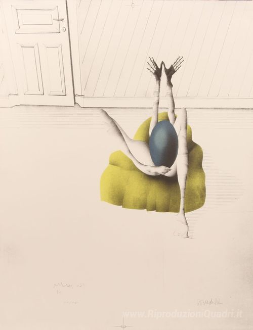 Ti offriamo una riproduzione artigianale su tela dell'opera famosa 'L'Oeuf Blu' di Paul Wunderlich, dal Museo delle Riproduzioni.