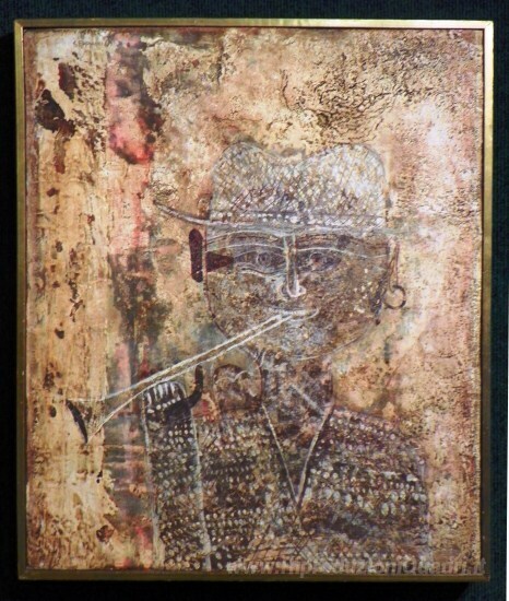 Ti offriamo una riproduzione artigianale su tela dell'opera famosa 'L'uomo senza titolo con il cappello e corno' di Gustavo Foppiani, dal Museo delle Riproduzioni.
