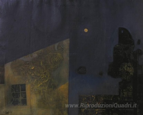Ti offriamo una riproduzione artigianale su tela dell'opera famosa 'Magic Night a Szentendre' di Endre Balint, dal Museo delle Riproduzioni.