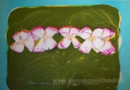 Ti offriamo una riproduzione artigianale su tela dell'opera famosa 'Mai cousu par les fleurs de Pommiers' di Jean Messagier, dal Museo delle Riproduzioni.