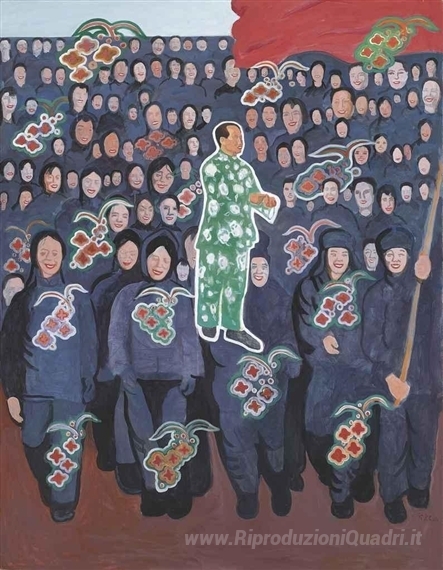 Ti offriamo una riproduzione artigianale su tela dell'opera famosa 'Mao e il suo popolo - Blu' di Yu Youhan, dal Museo delle Riproduzioni.