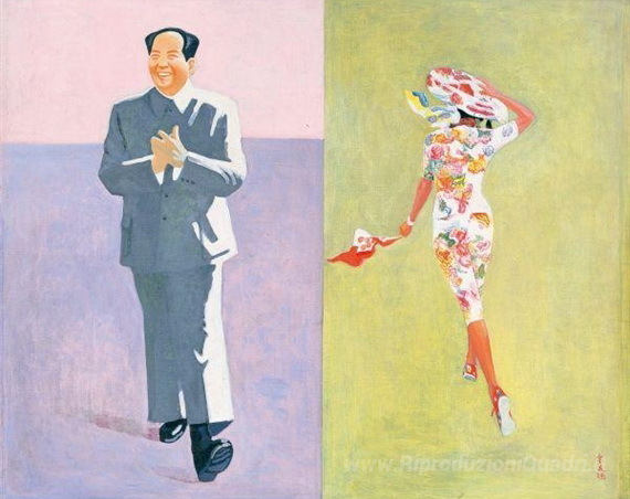 Ti offriamo una riproduzione artigianale su tela dell'opera famosa 'Mao e una ragazza' di Yu Youhan, dal Museo delle Riproduzioni.