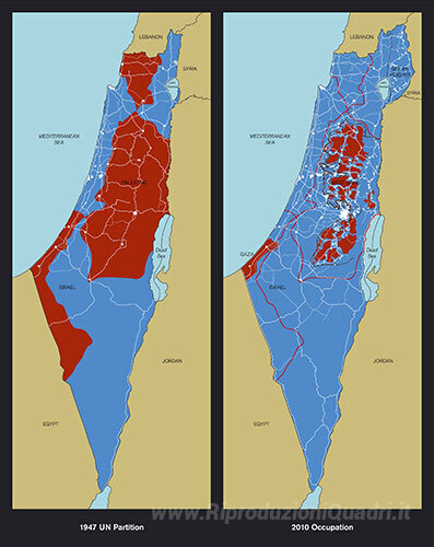 Ti offriamo una riproduzione artigianale su tela dell'opera famosa 'Mappe della Palestina' di Richard Hamilton, dal Museo delle Riproduzioni.