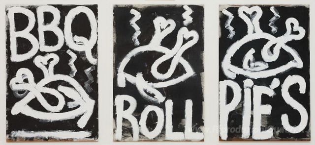 Ti offriamo una riproduzione artigianale su tela dell'opera famosa 'Mayfair: Un chook, un rotolo, e una torta' di Robert MacPherson, dal Museo delle Riproduzioni.