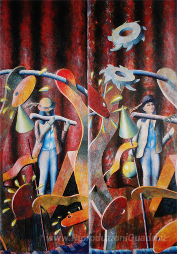 Ti offriamo una riproduzione artigianale su tela dell'opera famosa 'Memórias dum circo' di Rene Bertholo, dal Museo delle Riproduzioni.
