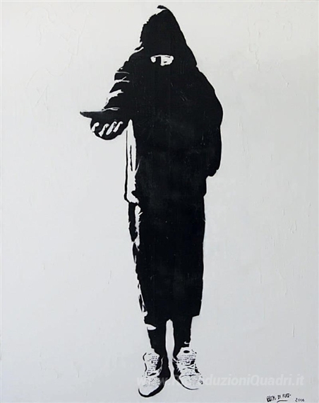 Benvenuti nel nostro esclusivo catalogo di dipinti a olio, dove l'arte incontra l'eleganza italiana. Oggi vi presentiamo l'opera Mendicante dell'illustre artista Blek le Rat, un maestro della street art che ha saputo tradurre la sua visione urbana in un linguaggio pittorico raffinato. Con la sua tecnica distintiva, Blek le Rat utilizza il colore e la luce per raccontare storie, trasformando ogni tela in un viaggio emotivo.