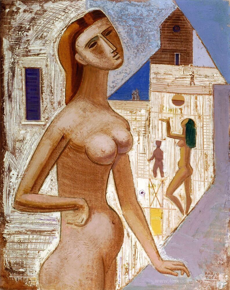 Ti offriamo una riproduzione artigianale su tela dell'opera famosa 'Meriggio' di Mario Tozzi, dal Museo delle Riproduzioni.