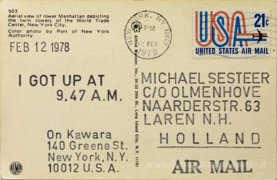 Ti offriamo una riproduzione artigianale su tela dell'opera famosa 'Mi sono alzato alle 09:47 (12 febbraio, 1978)' di On Kawara, dal Museo delle Riproduzioni.