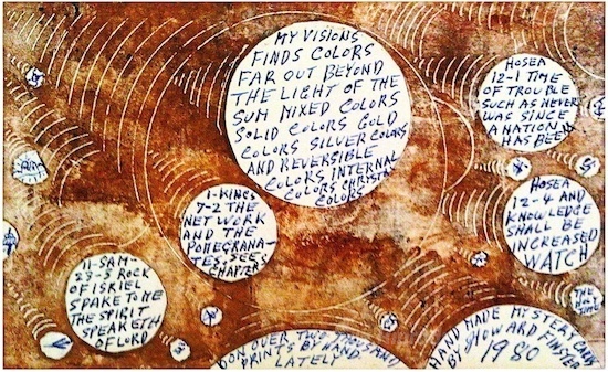 Ti offriamo una riproduzione artigianale su tela dell'opera famosa 'Mistero Card - My Visioni' di Howard Finster, dal Museo delle Riproduzioni.