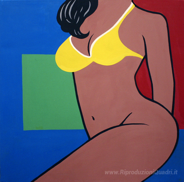Ti offriamo una riproduzione artigianale su tela dell'opera famosa 'Monokini' di Marjorie Strider, dal Museo delle Riproduzioni.
