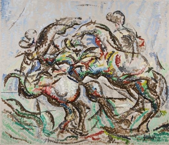 Ti offriamo una riproduzione artigianale su tela dell'opera famosa 'Movimento dei cavalli' di Robert Goodnough, dal Museo delle Riproduzioni.