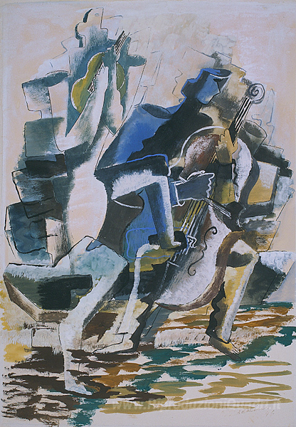 Ti offriamo una riproduzione artigianale su tela dell'opera famosa 'Musicisti' di Ossip Zadkine, dal Museo delle Riproduzioni.
