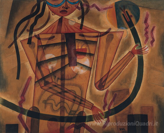 Ti offriamo una riproduzione artigianale su tela dell'opera famosa 'Na diafana' di Xul Solar, dal Museo delle Riproduzioni.