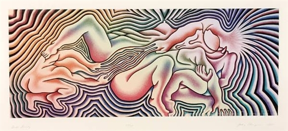Ti offriamo una riproduzione artigianale su tela dell'opera famosa 'Nascita Trinity' di Judy Chicago, dal Museo delle Riproduzioni.